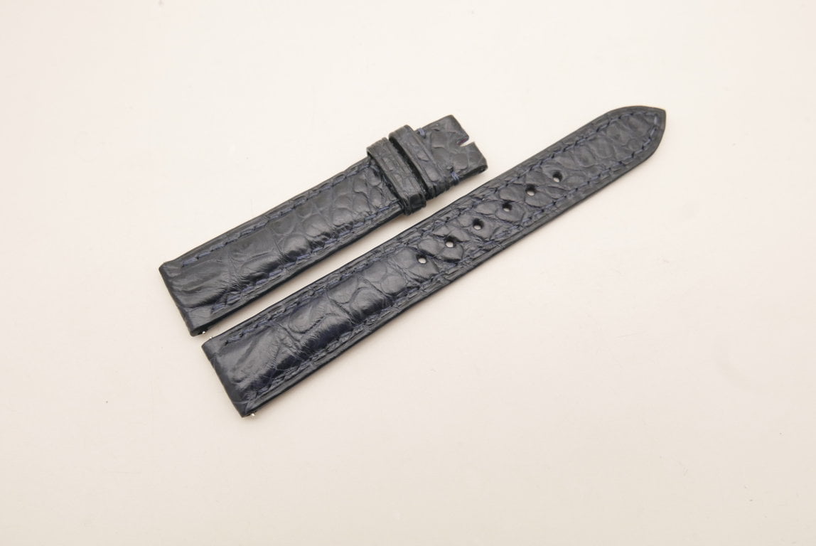 17.5mm/16mm Dark Navy Blue Genuine Crocodile Skin Leather Watch Strap for Cartier TANK SOLO SMALL #WT9503