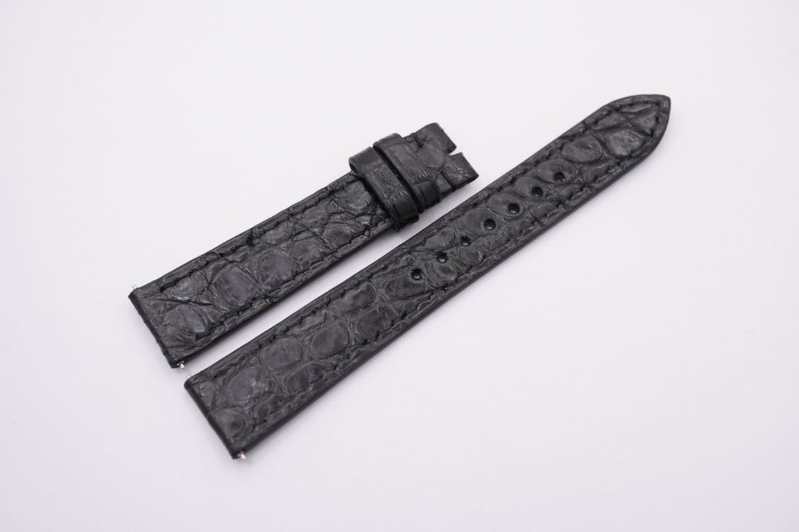 19mm/16mm Black Genuine CROCODILE Skin Leather Watch Strap for Cartier Must Large / Cartier Louis Large #WT13612