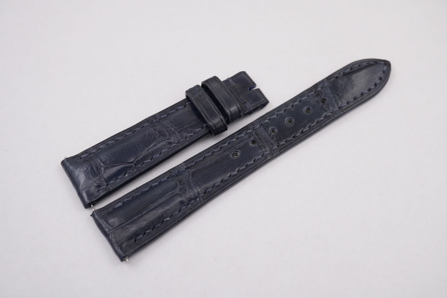19mm/16mm Navy Blue CROCODILE Skin Leather Watch Strap for Cartier Must Large / Cartier Louis Large #WT11685