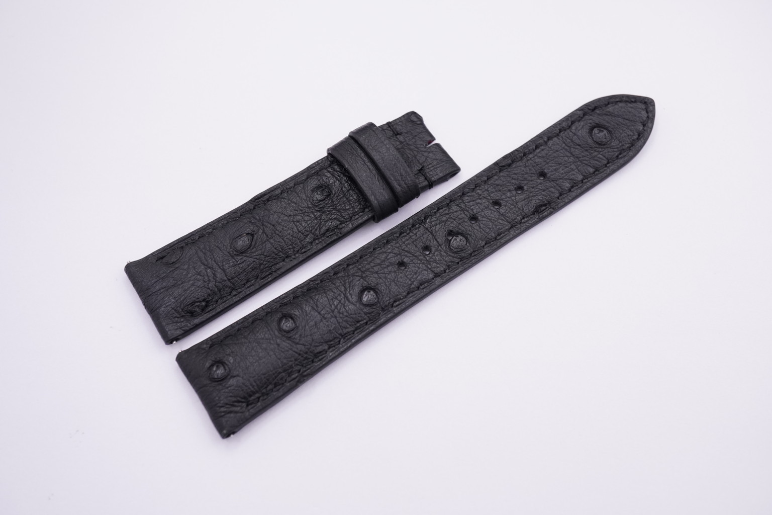 20.5mm Black Ostrich Quill Skin Leather Watch Strap for Cartier Tank SOLO LARGE & RONDE SOLO 36mm #WT13947
