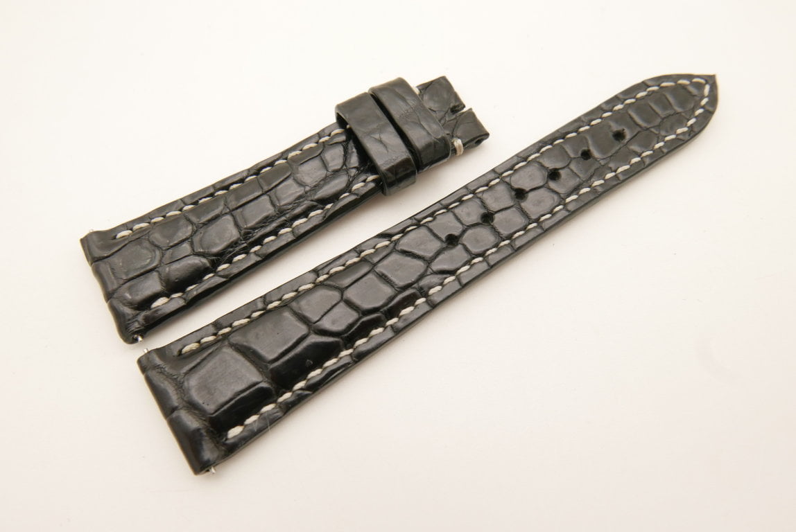 21mm/16mm Black Genuine Crocodile Skin Leather Watch Strap With Quick Release Function #WT7582