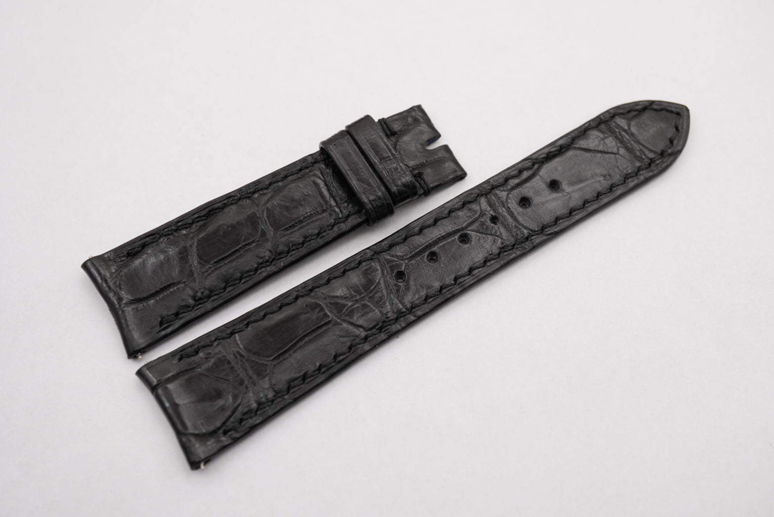 21mm/18mm Black CROCODILE Skin Leather Curved End Watch Strap For JLC #WT11470