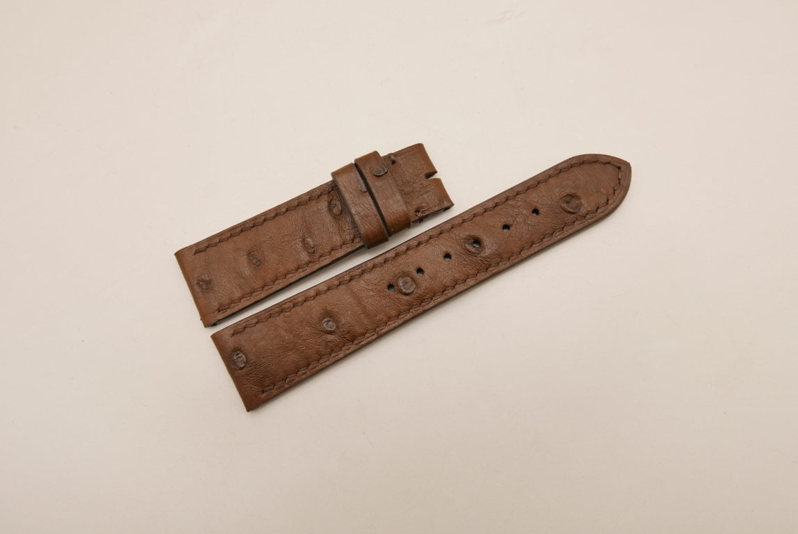 22mm/20mm Brown Genuine Ostrich Quill Skin Leather Watch Strap #WT10195