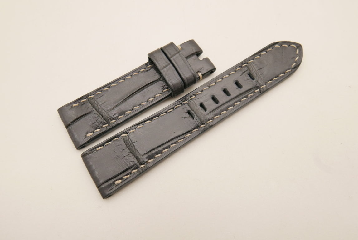 22mm/20mm Dark Gray Genuine CROCODILE Skin Leather Watch Strap for Panerai #WT8934