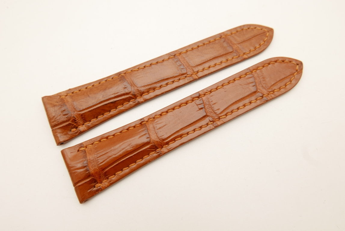 22.5mm Cognac Genuine CROCODILE Skin Leather Deployment Strap for Cartier Tank SOLO XL #WT7789
