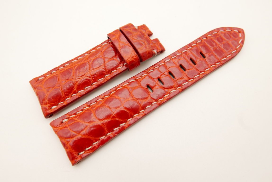 24mm/22mm Red Genuine CROCODILE Skin Leather Watch Strap for Panerai #WT7554