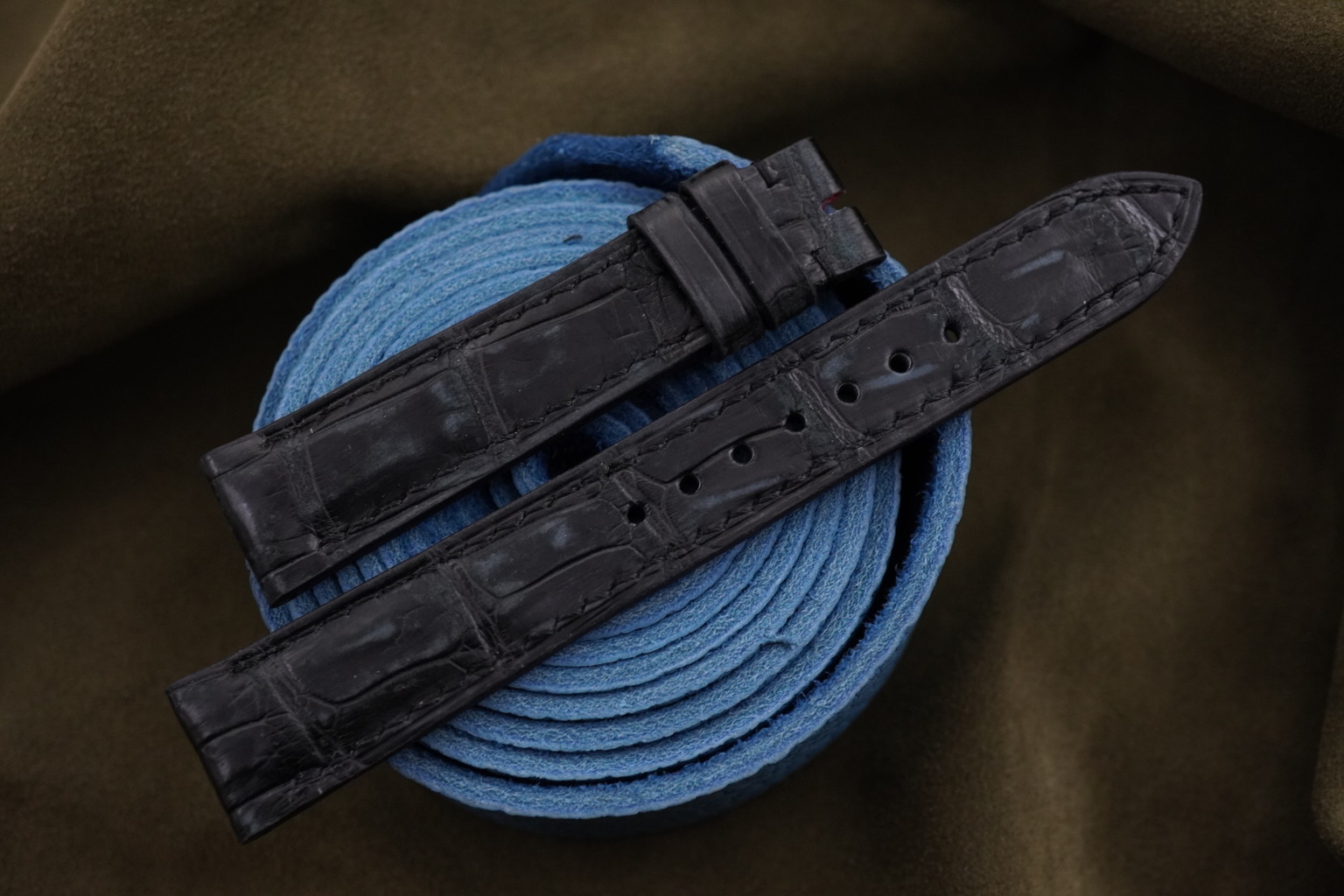 Black Crocodile Stonewash Leather Watch Strap for Cartier Tank Solo, Tank Must , Tank Louis.