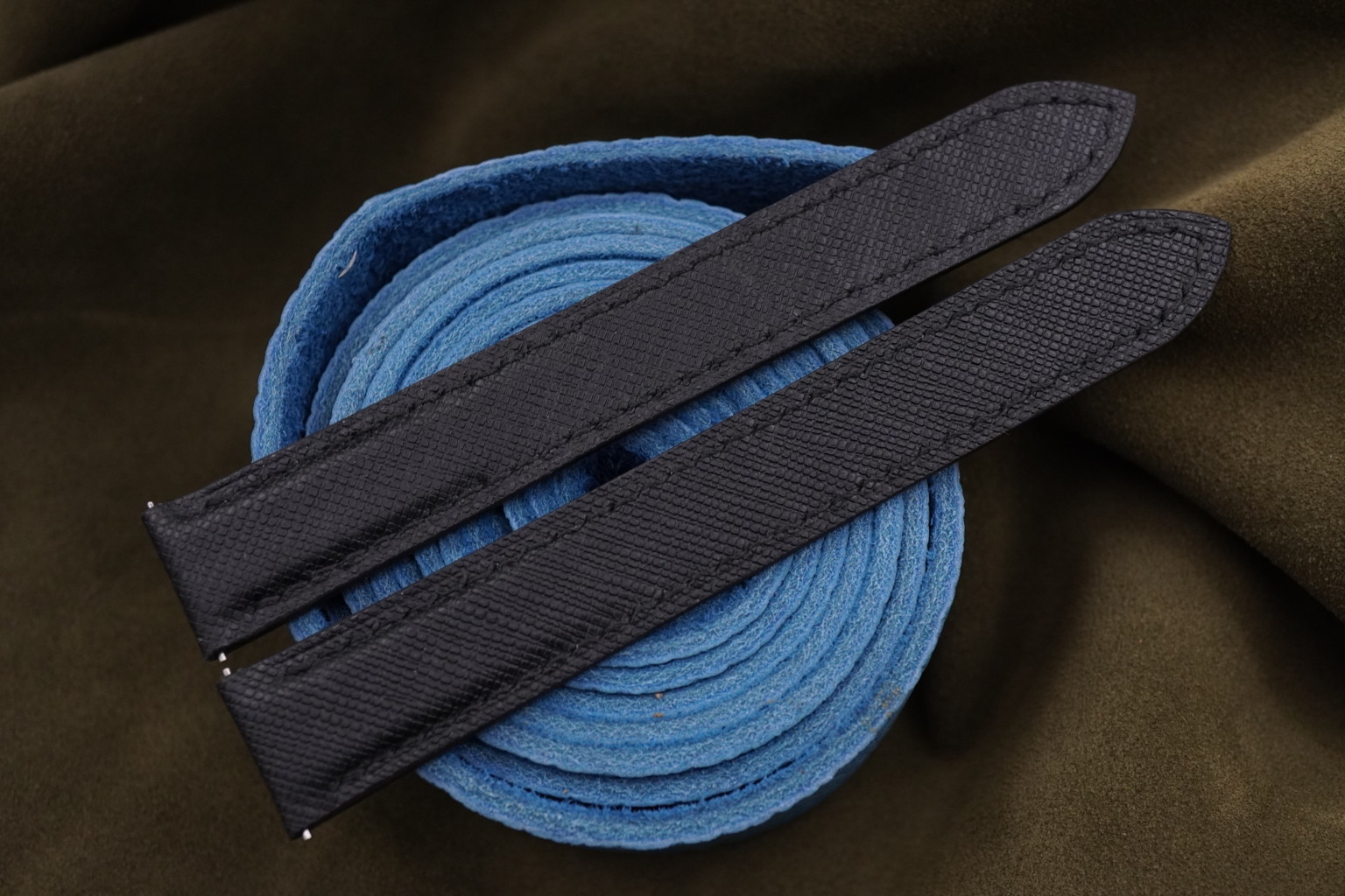 Black Saffiano Leather Watch Strap for Cartier Tank Solo, Tank Must, Tank Louis