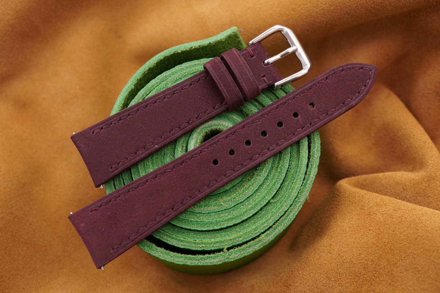Burgundy Nubuck Leather Curved End Watch Strap For JLC – CUSTOM MADE SERVICE CT2630