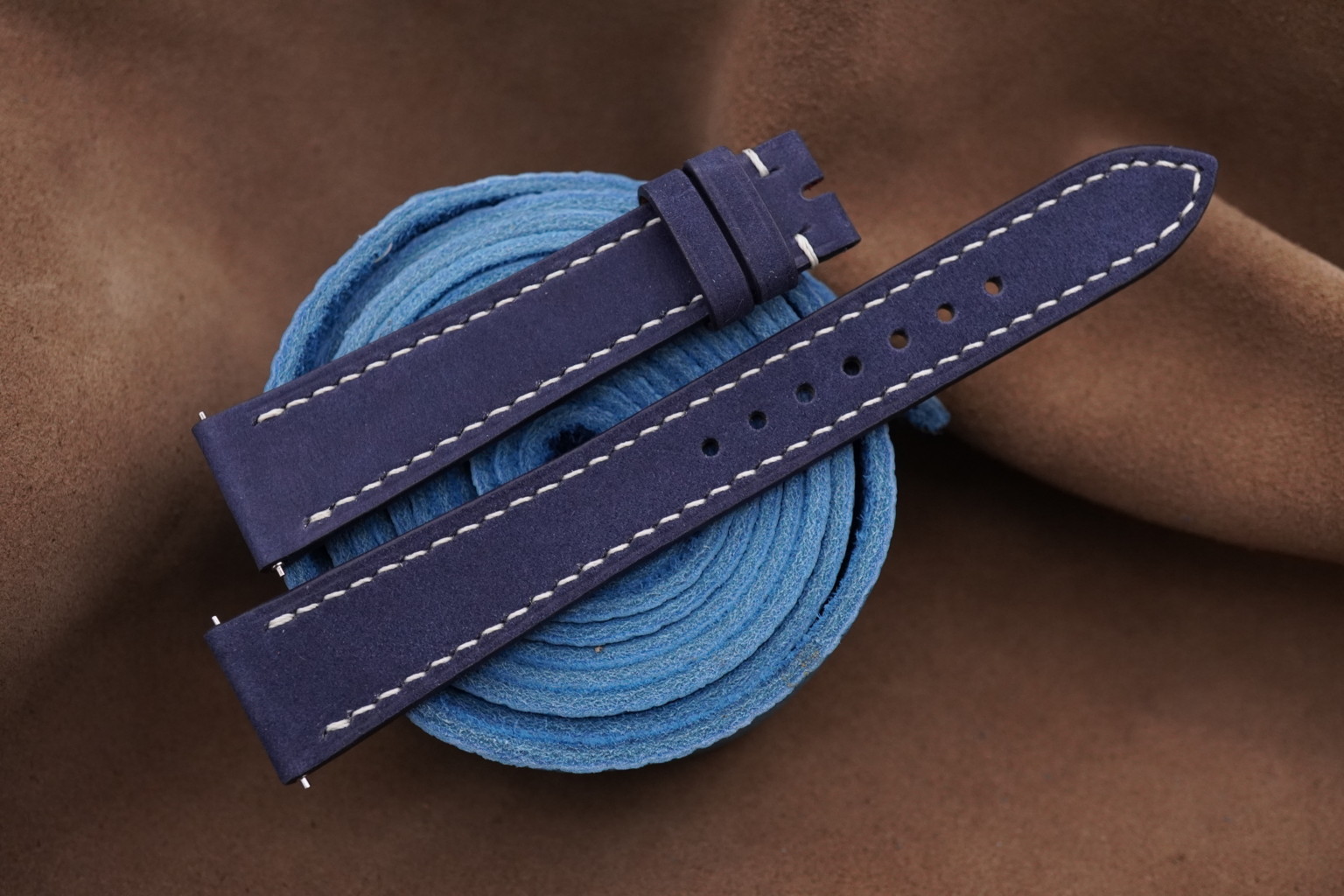Dark Blue Nubuck Leather Watch Strap for Cartier Tank Solo, Tank Must , Tank Louis.