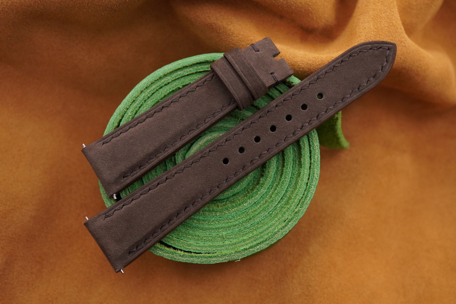Dark Brown Nubuck Leather Watch Strap for Cartier Tank Solo, Tank Must , Tank Louis.