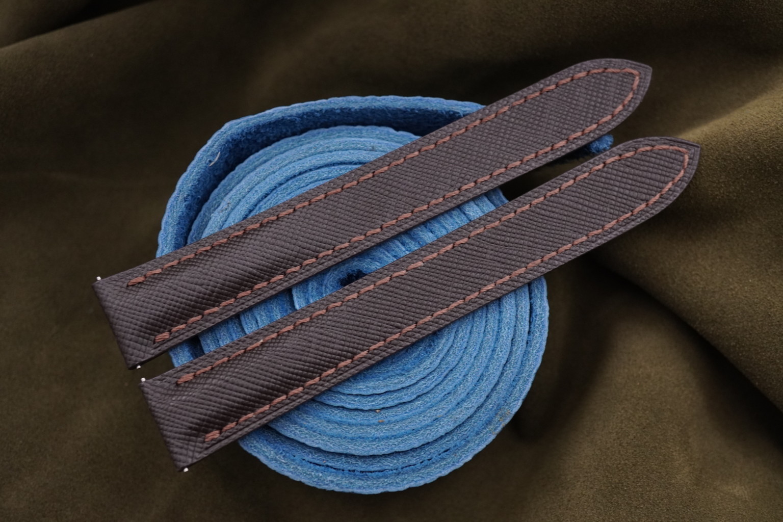 Dark Brown Saffiano Leather Watch Strap for Cartier Tank Solo, Tank Must, Tank Louis
