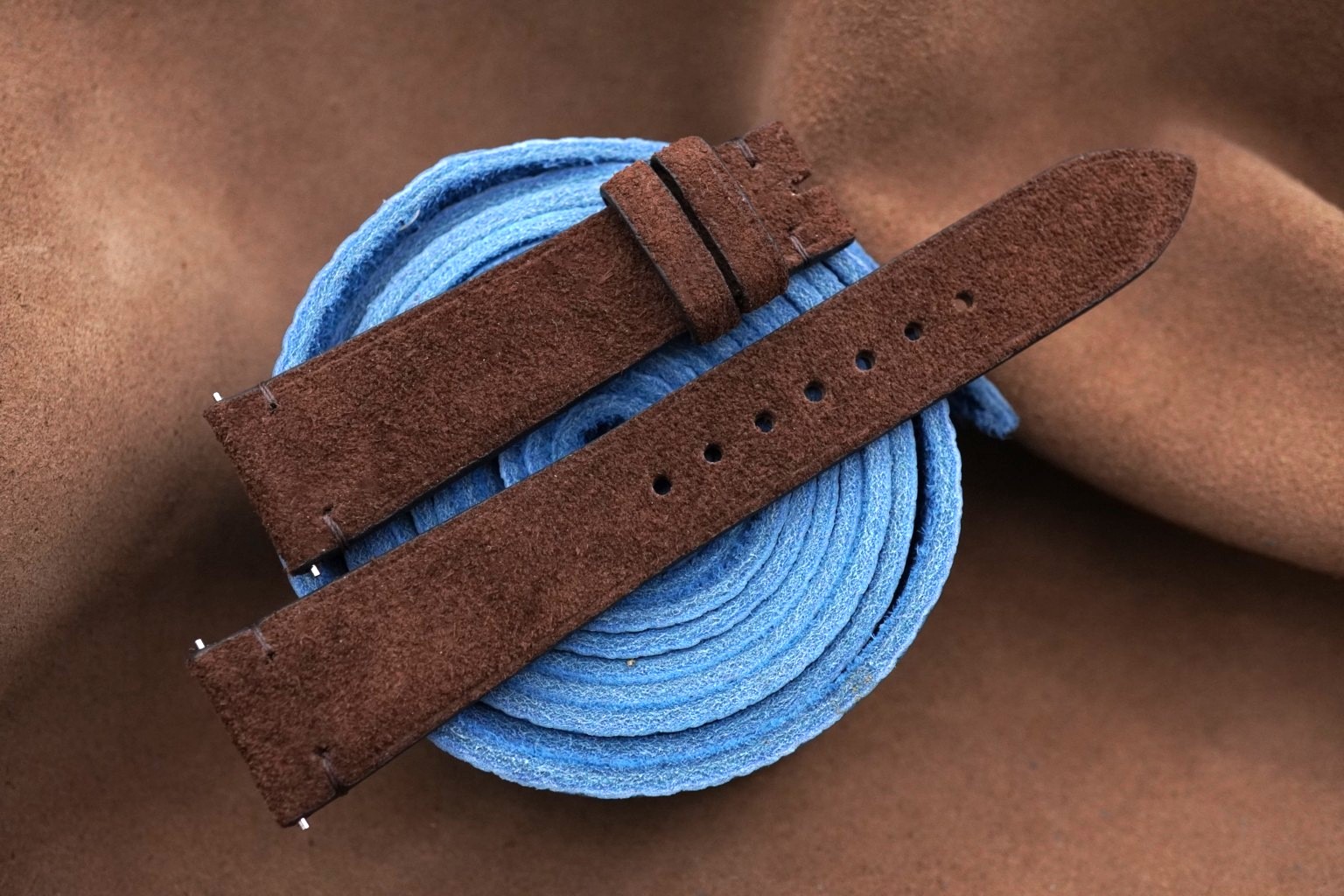 Dark Brown Suede Leather Watch Strap for Cartier Tank Solo, Tank Must , Tank Louis.