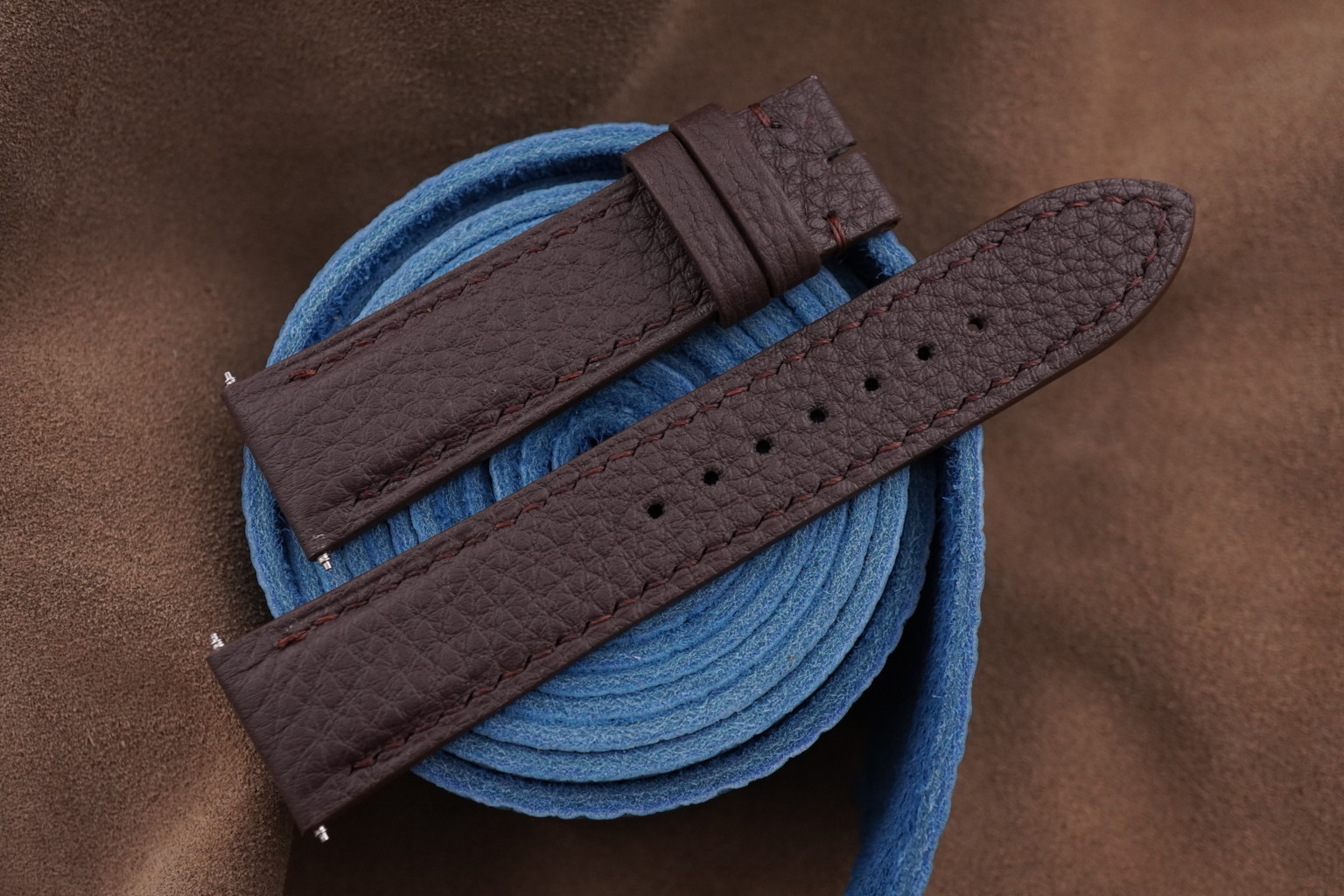 Dark Brown Togo Calf Leather Watch Strap With Quick Release Function
