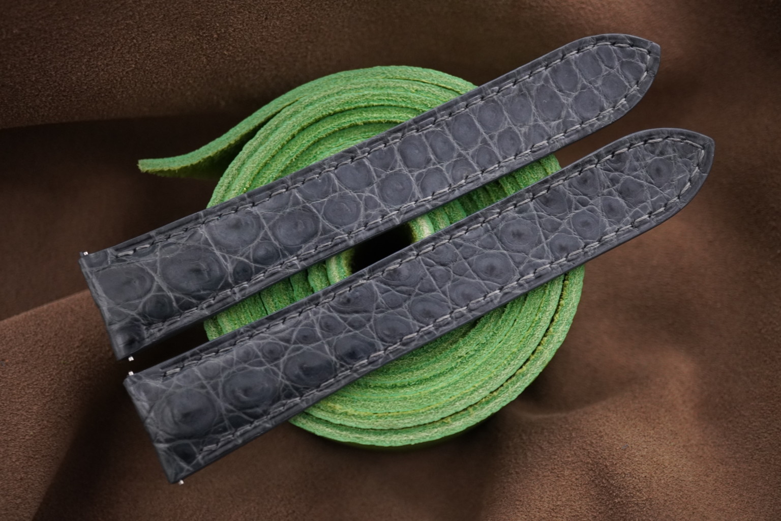 Dark Gray Crocodile Leather Watch Strap for Cartier Tank Solo, Tank Must, Tank Louis