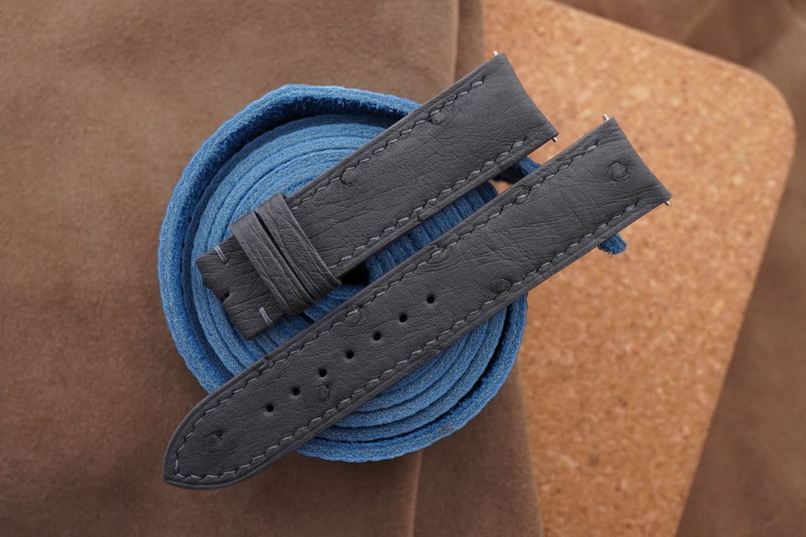Dark Gray Ostrich Quill Leather Curved End Watch Strap For JLC – CUSTOM MADE SERVICE CT2514