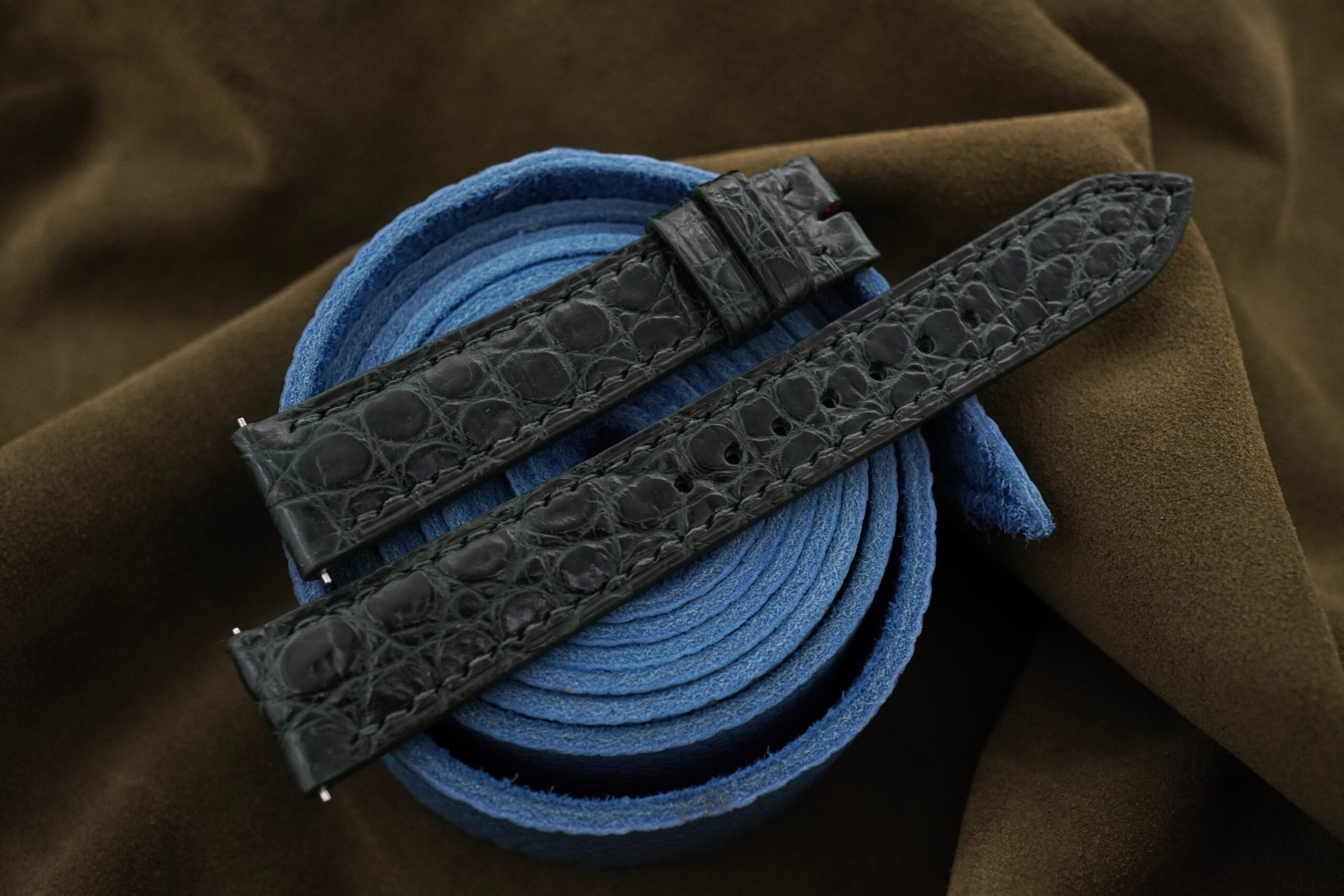Dark Green Crocodile Leather Watch Strap With Quick Release Functions