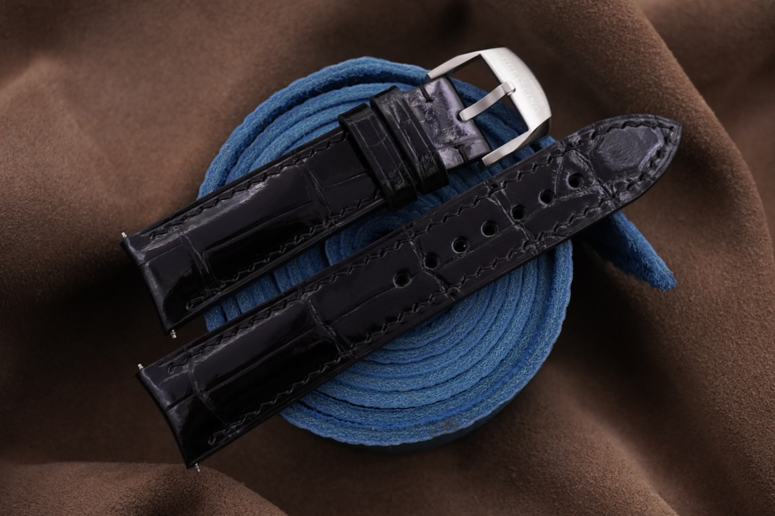 Glossy Black Crocodile Leather Curved End Watch Strap For JLC – CUSTOM MADE SERVICE CT2880