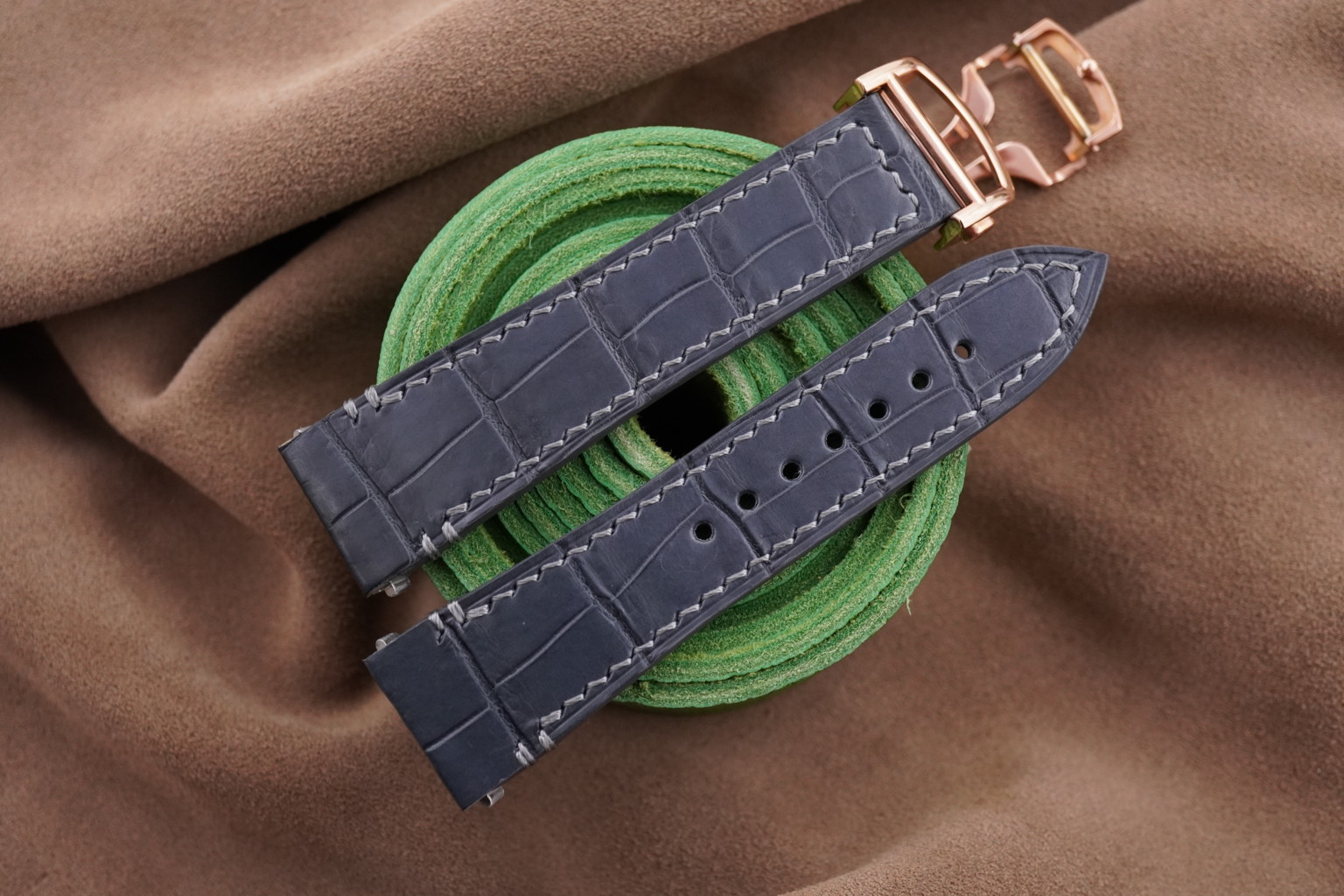 Gray Crocodile Leather Deployment watch strap with quickswitch for Cartier Santos Medium, Large model