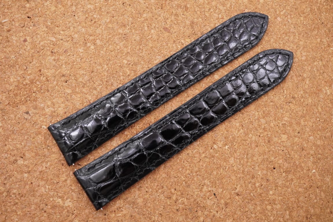 High Grade Glossy Black Crocodile Leather Watch Strap for Cartier Tank Solo, Tank Must, Tank Louis