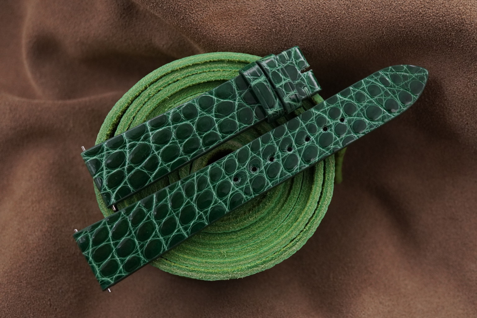 High Grade Glossy Green Crocodile Leather Watch Strap for Cartier Tank Solo, Tank Must , Tank Louis.