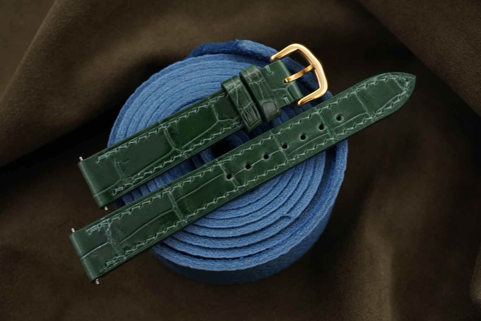 High Grade Glossy Green Crocodile Leather Watch Strap for Cartier Tank Solo, Tank Must , Tank Louis.