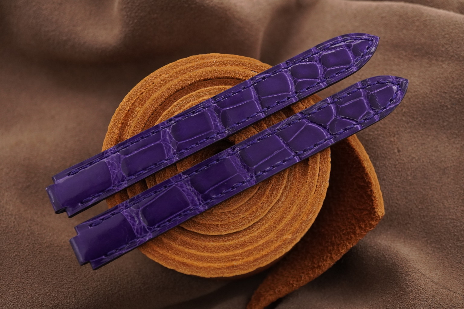 High Grade Glossy Purple Crocodile Leather Deployment Strap for Cartier Ballon 28mm, 33mm, 36mm, 42mm, 44mm
