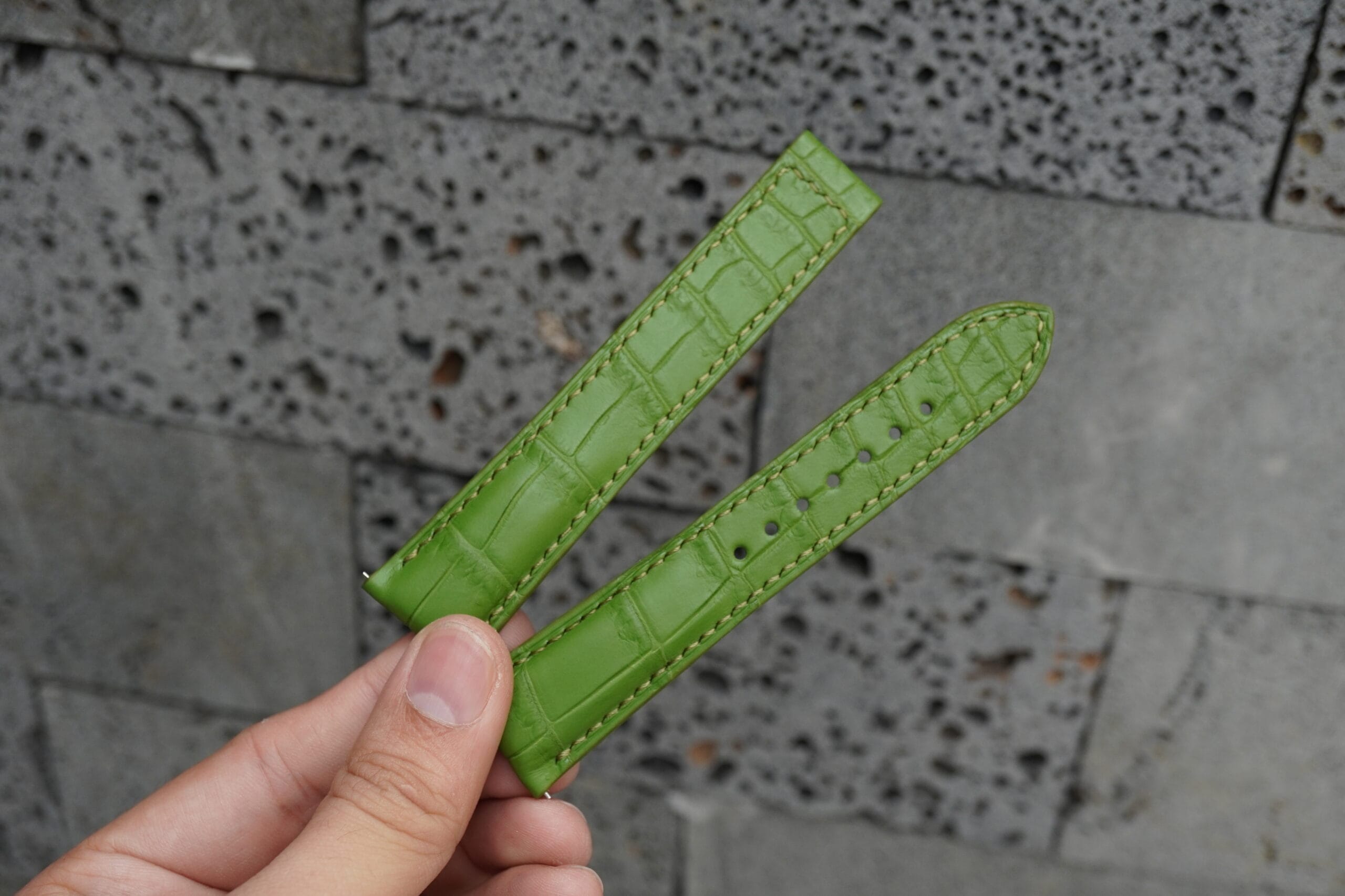 High Grade Matte Lime Green Crocodile Leather Watch Strap for Omega