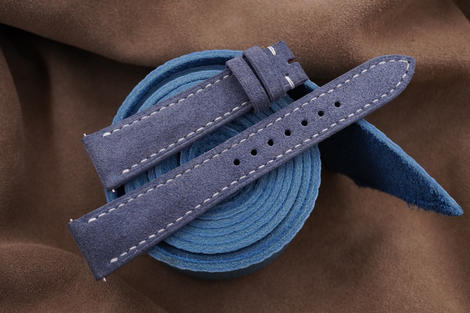 Light Blue Suede Calf Leather Watch Strap for Cartier Tank Solo, Tank Must , Tank Louis.