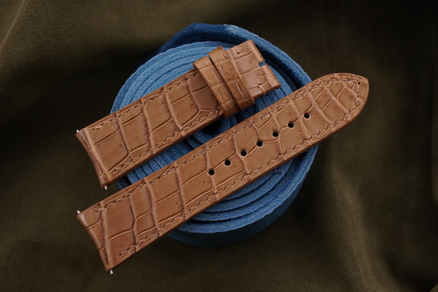 Light Brown Crocodile Leather Watch Strap for JLC
