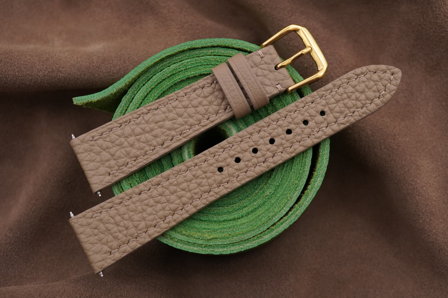Light Brown Togo Calf Leather Watch Strap for Cartier Tank Solo, Tank Must , Tank Louis.