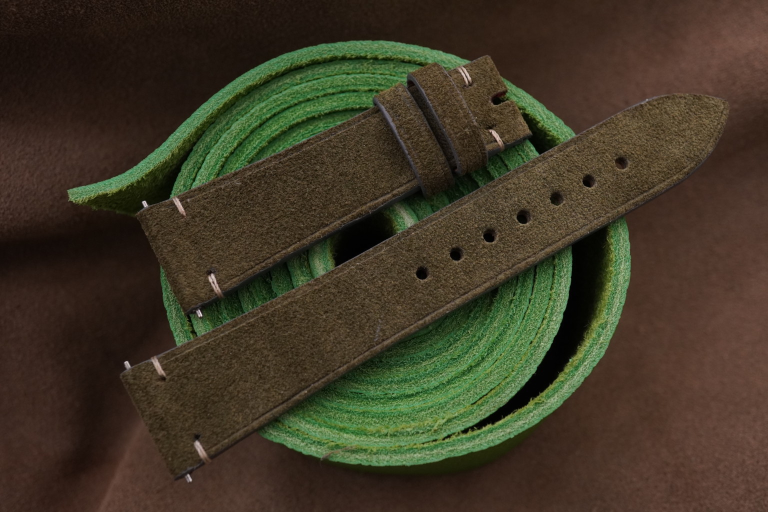 Olive Green Suede Calf Leather Watch Strap for Cartier Tank Solo, Tank Must , Tank Louis.