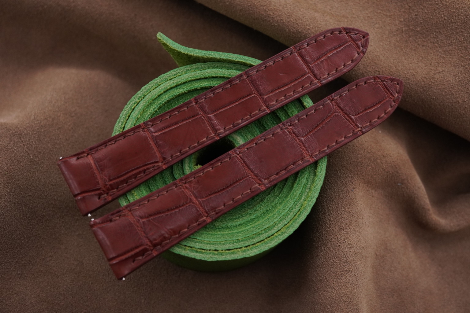 Red Brown Crocodile Leather Watch Strap for Cartier Tank Solo, Tank Must, Tank Louis