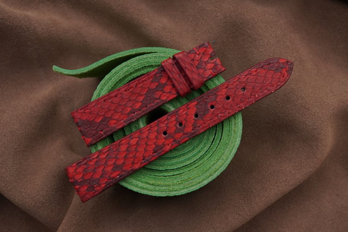 Red Python Leather Watch Strap for Cartier Tank Solo, Tank Must , Tank Louis.