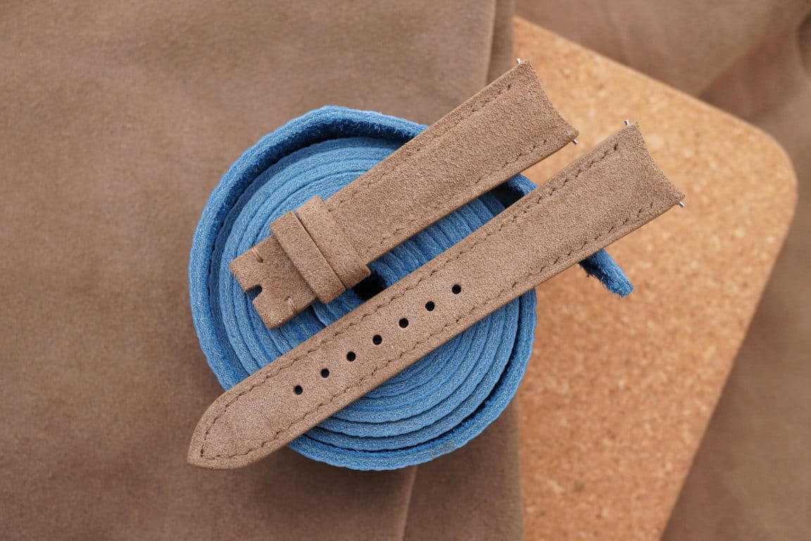 Taupe Suede Leather Curved End Watch Strap For JLC – CUSTOM MADE SERVICE CT2503