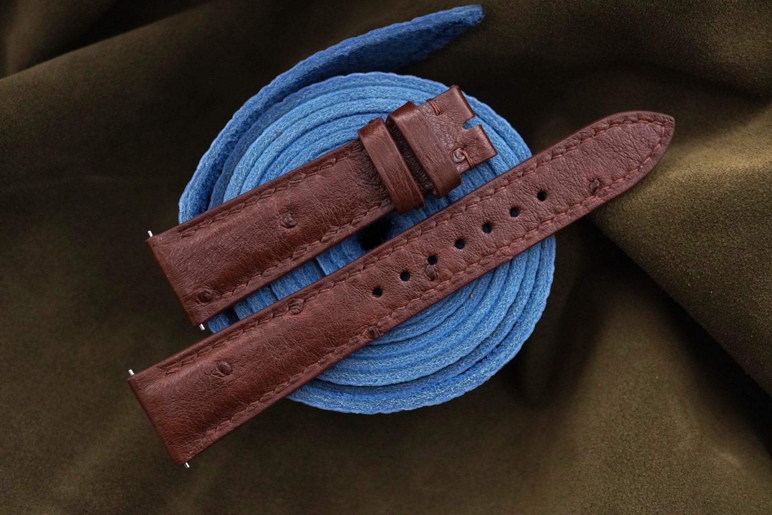 Vintage Brown Ostrich Quill Leather Watch Strap With Quick Release Function